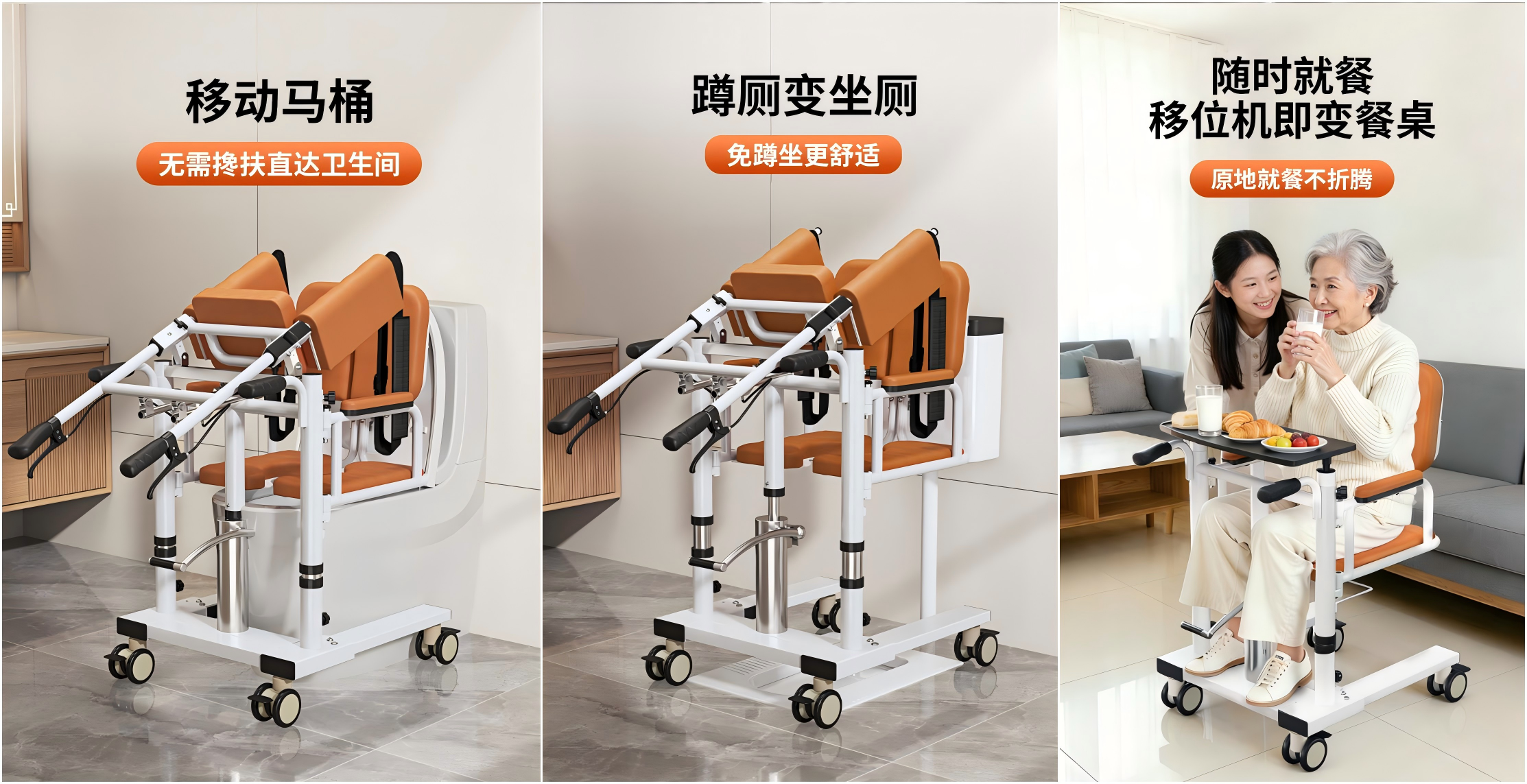 据了解,这款移位机主打日常照护场景,可轻松实现床与轮椅、马桶、浴室等不同场景间的转移,覆盖失能老人起居、如厕等生活需求。产品采用轻量化机身设计,搭配万向轮组,即便在狭小的居家空间也能灵活移动,方便家庭、养老院、康复机构等多种场景使用。