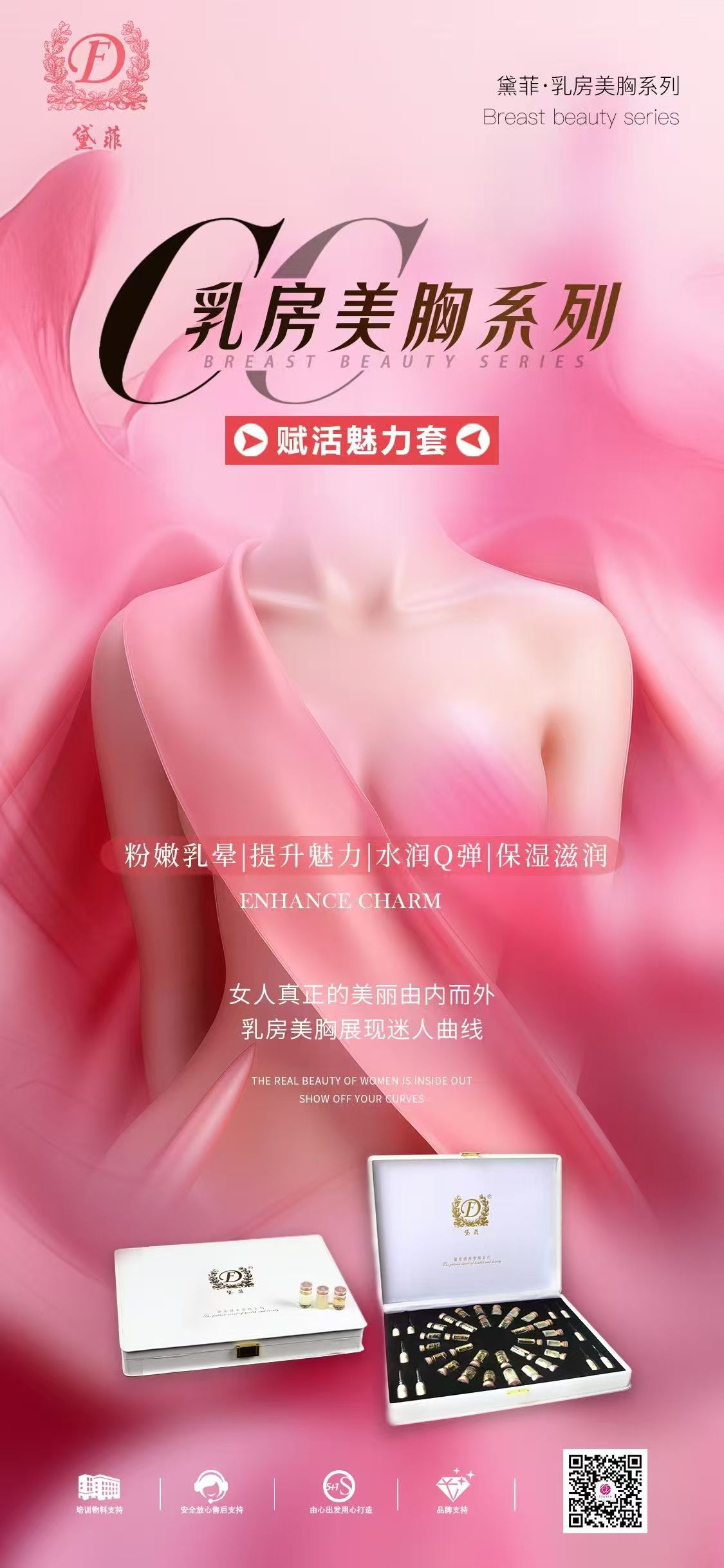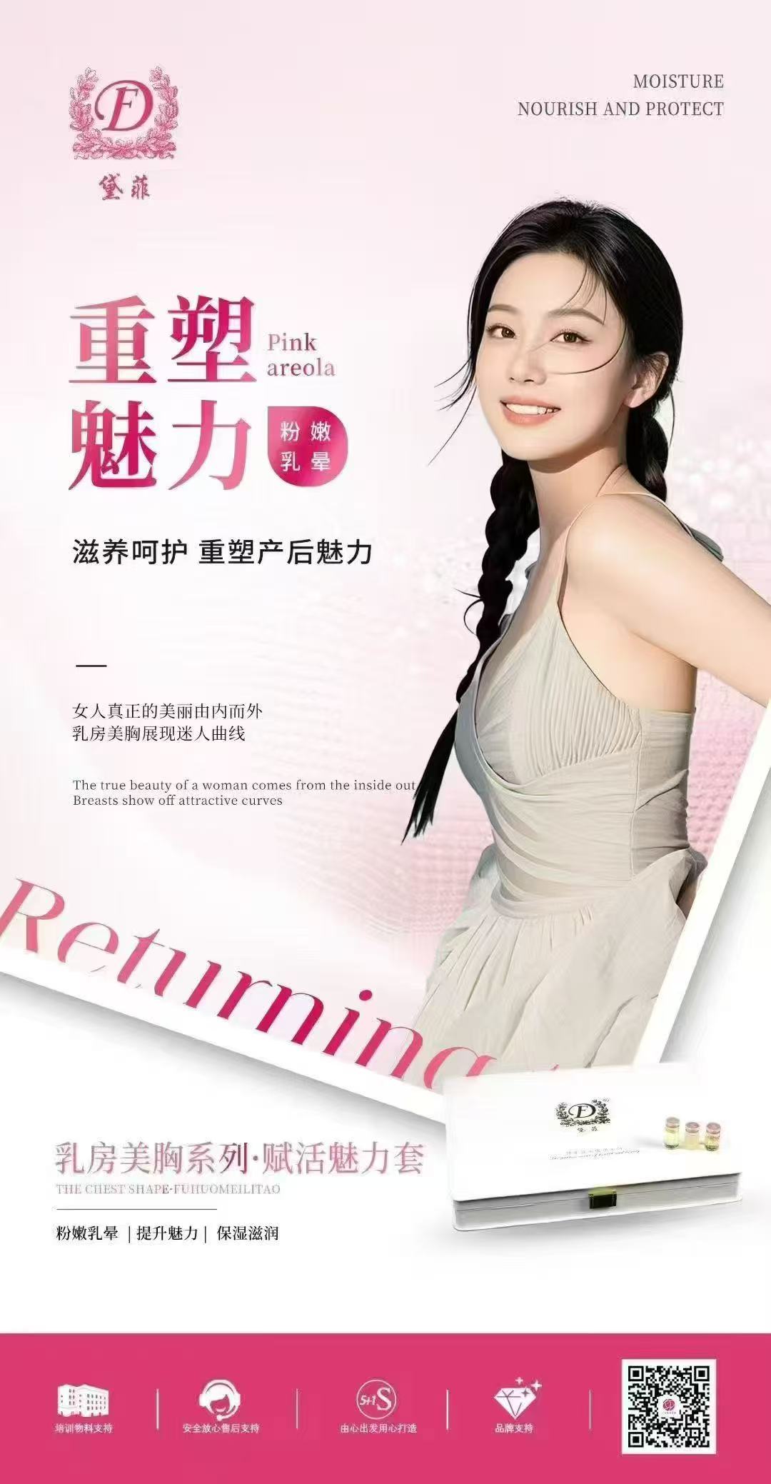 「赋活魅力套」集精华、营养、修护与密集护理于一体,包含复活精华液、复活营养霜、复活修护油及复活精华膜四款核心产品。套盒着眼于产后乳房常见的萎缩、下垂、外扩、肤色暗沉及敏感度降低等综合问题,通过“滋养-强韧-塑形-润色” 的多维路径,致力于由内而外改善乳房肌肤健康度,恢复其饱满、弹性与柔和光泽,从而升华整体女性魅力。