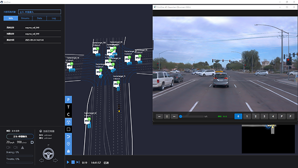 51Sim构建的3DGS混合仿真技术已实现产业化落地。其技术架构融合3DGS静态场景重建与动态模型叠加,在保持高置信度的同时实现场景多样性指数级提升。该方案支持基于4DGS的LogSim闭环仿真,可基于原始视频流实现主车变车道、对手车换车型和轨迹等场景仿真,指数级提升价值数据泛化性。
